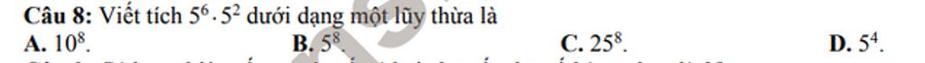 `5^6 . 5^2=5 ^ (6+2)=5^8`