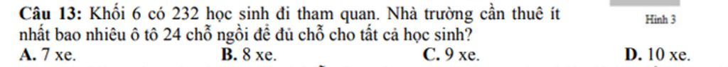 Vậy nhà trường cần thuê ít nhất `10` xe ô tô.