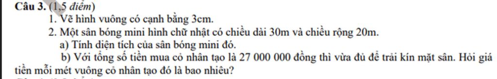 Vậy giá tiền mỗi `m^2` có nhân tạo đó là `45000` đồng