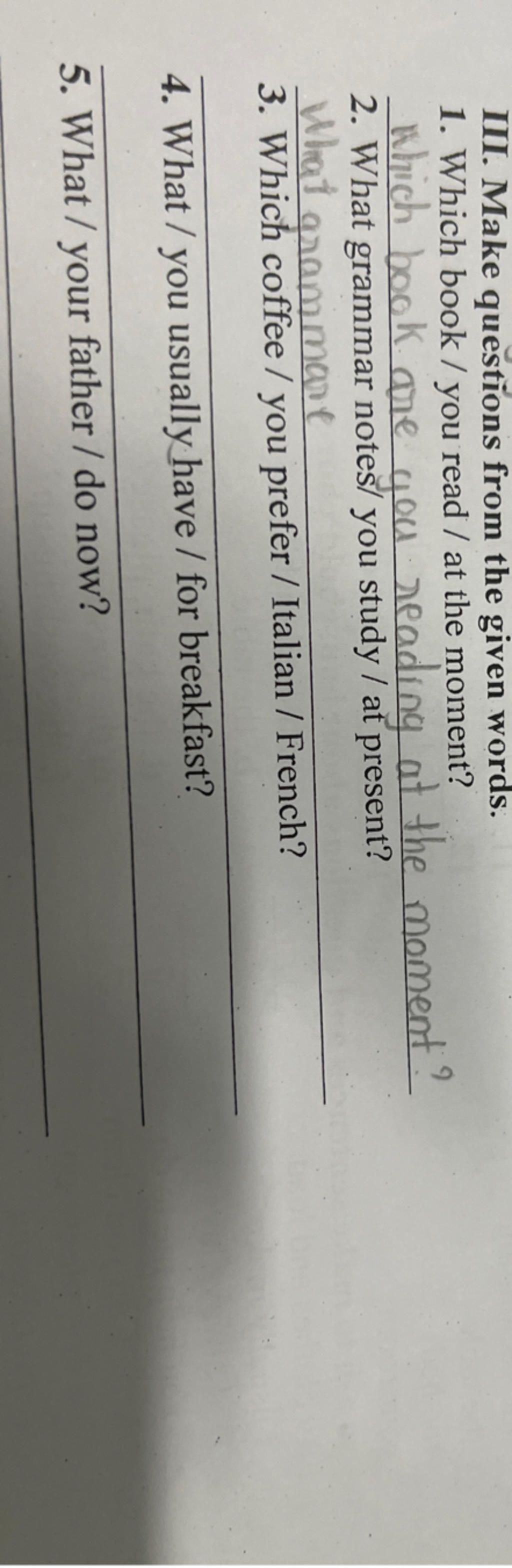 `?)` (Wh) + Am/Is/Are + S + V_ing...?