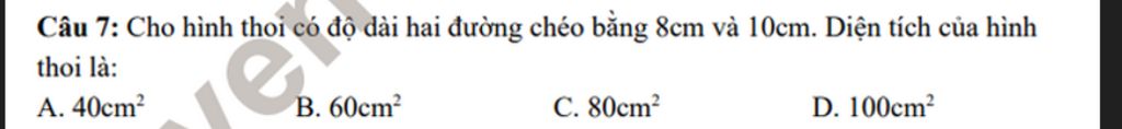 Diện tích hình thoi là `:`