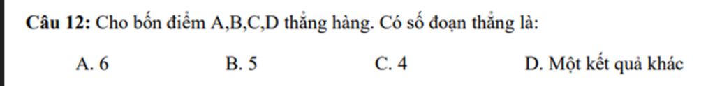 Có `6` đoạn thẳng nên ta chọn đáp án `A`
