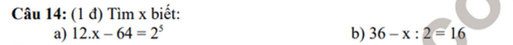 a) `12x - 64 = 2^5`