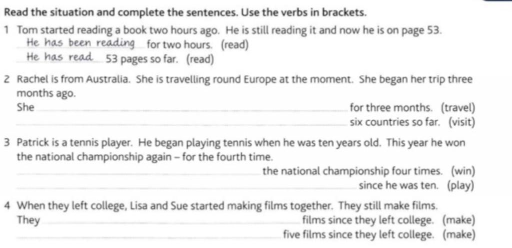 Read the situation and complete the sentences. Use the verbs in brackets.