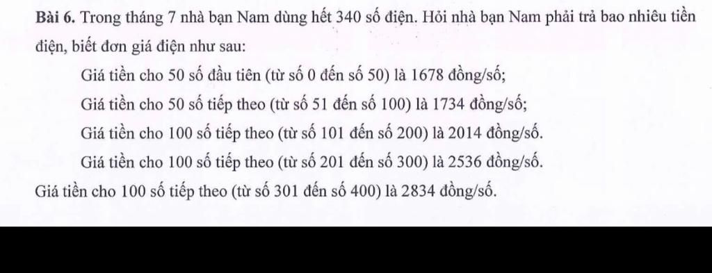 Số tiền điện cho ` 301 ` đến ` 340 ` số còn lại là ` : `