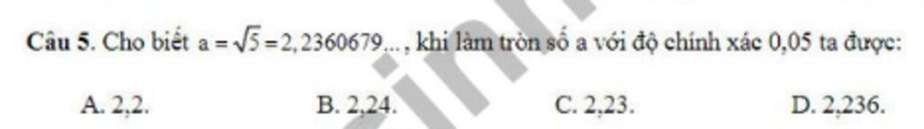 Vậy kết quả làm tròn `a` đến độ chính xác `0,05` là `2,2`