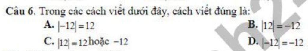 `B.` Thiếu vì `|12|=12` hoặc `-12`