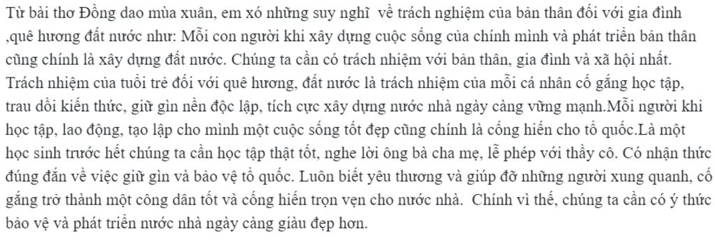 +) sống có trách nhiệm, góp mùa xuân nhỏ của mình vào mùa xuân lớn của đất nước