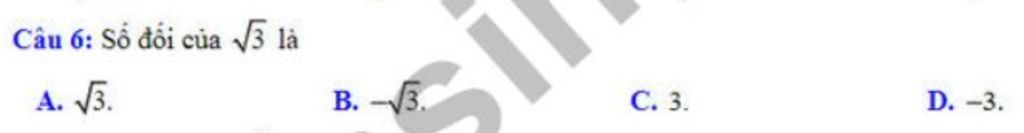 `=>` Số đối của `\sqrt{3}` là `-\sqrt{3}`
