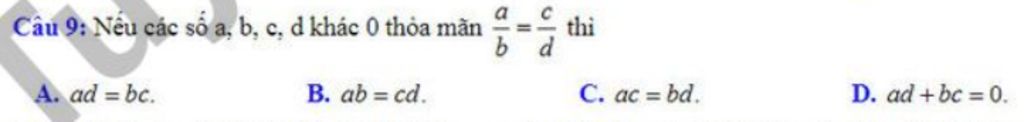 Với `a,b,c,d` là các số cho trước với `a,b,c,d` là các số khác `0` thì: