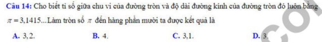 `\pi=3,1415...` làm tròn đến hàng phần mười ta có