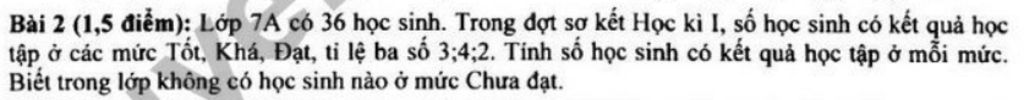 Vì số học sinh mức Tốt, Khá, Đạt tỉ lệ ba số 3;4;2 với tổng số học sinh là 36