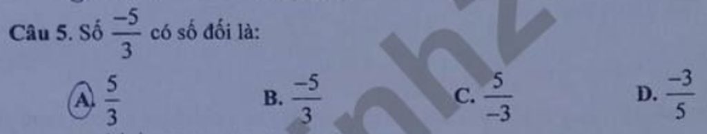 Số đối của `\frac{-5}{3}` là : `-(-5/3)=5/3`
