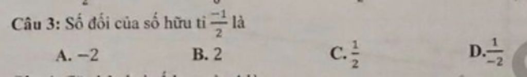 `=>` Số đối của `(-1)/(2)` là `1/2`