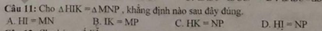 Ta có : $\triangle$ `HIK` `=` $\triangle$ `MNP` ( Giả thiết )