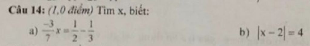 `a)` `-3/7 x = 1/2 -1/3`