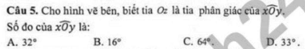 `=>` `hat{xOy}=2*hat{xOz}=2*32°=64°`