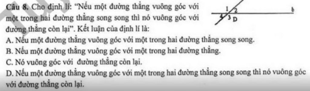 `=>` Định lí là ''nó vuông góc với đường thẳng còn lại''