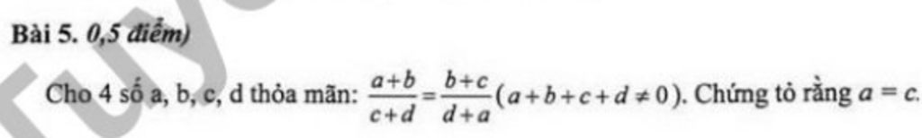 $\bullet$ Với `a+b+c+d\ne 0`, ta có : `(a+b)/(c+d)=(b+c)/(d+a)`