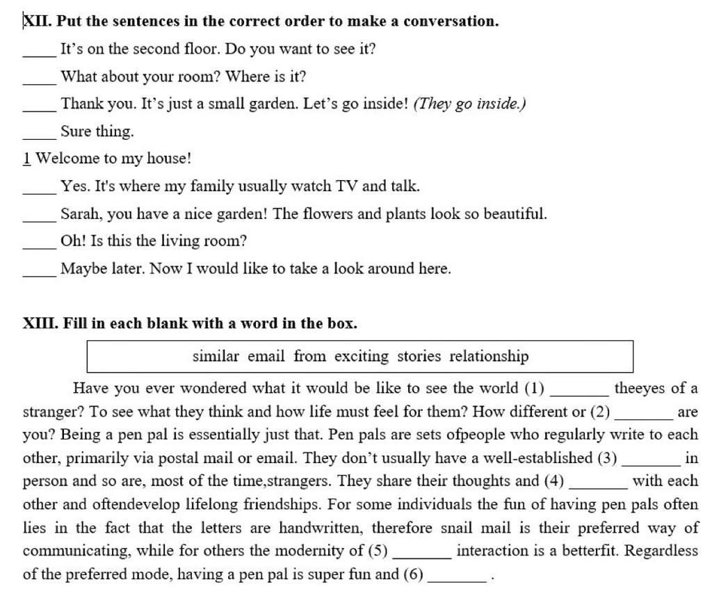 XII. Put the sentences in the correct order to make a conversation.