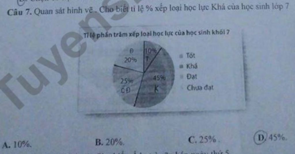 `=>` Tỉ lệ `%` là `45%` xếp loại học lực Khá của học sinh lớp `7`
