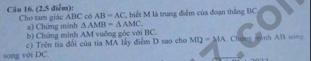 c) Xét `triangle` ABM và `triangle` DCM có: