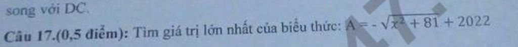 `A=-sqrt{x^2+81}+2022=2022-sqrt{x^2+81}`