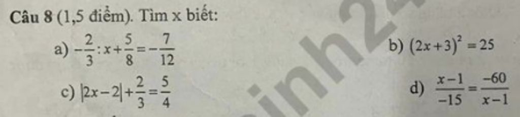 `d)(x-1)/(-15)=(-60)/(x-1)(` Áp dụng `a/b=c/d=>ad=bc)`