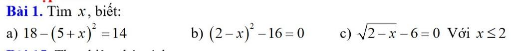 `a)``18-(5+x)^2 =14`