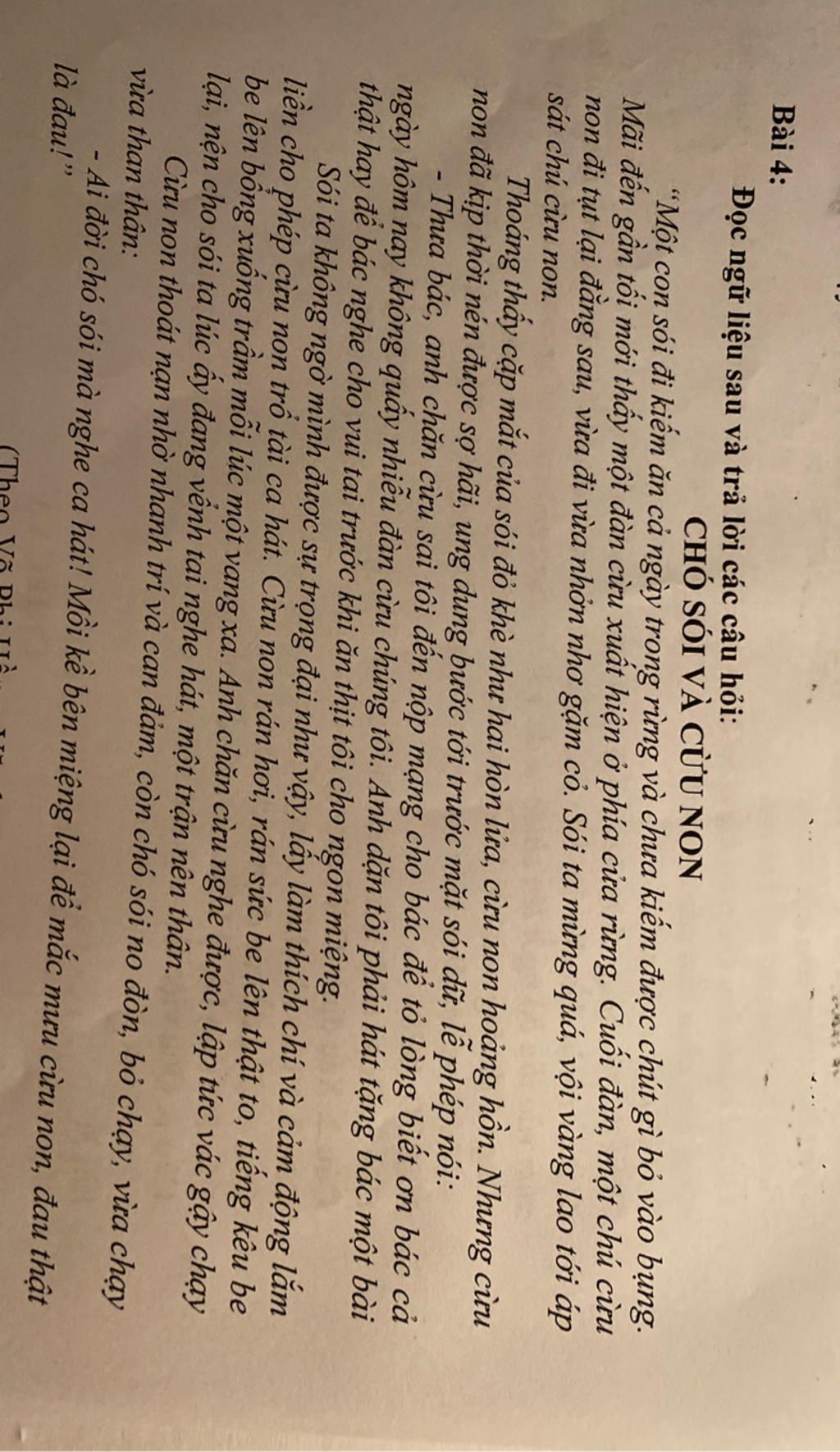 Câu5 Chi tiết cừu non hát tặng sói một bài trước khi nộp mạng thể hiện phẩm chất gì của Cừu