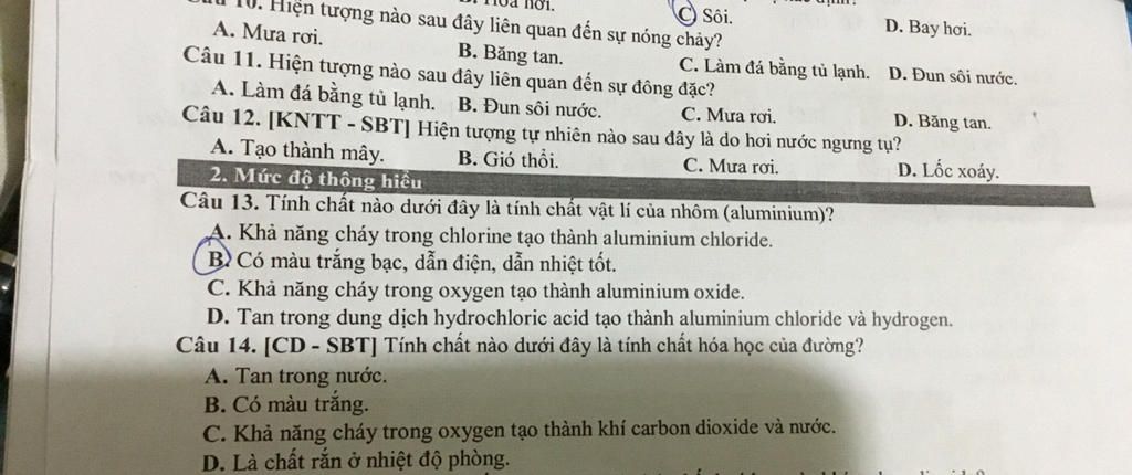 khi cháy thì đường sẽ chuyển màu khác không còn vị ngọt ( còn 1 cái nữa là hòa tan trong nước thành thể lỏng)