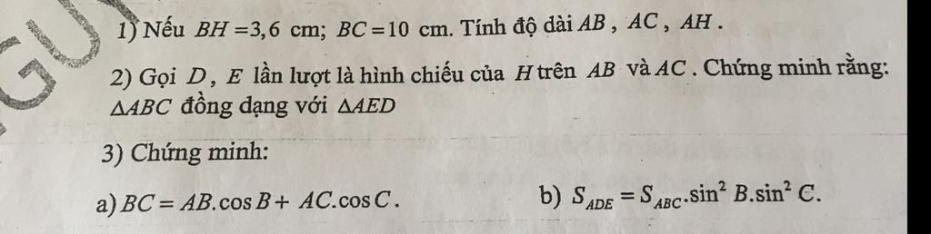 1) Áp dụng hệ thức giữa cạnh và đường cao trong tam giác vuông: