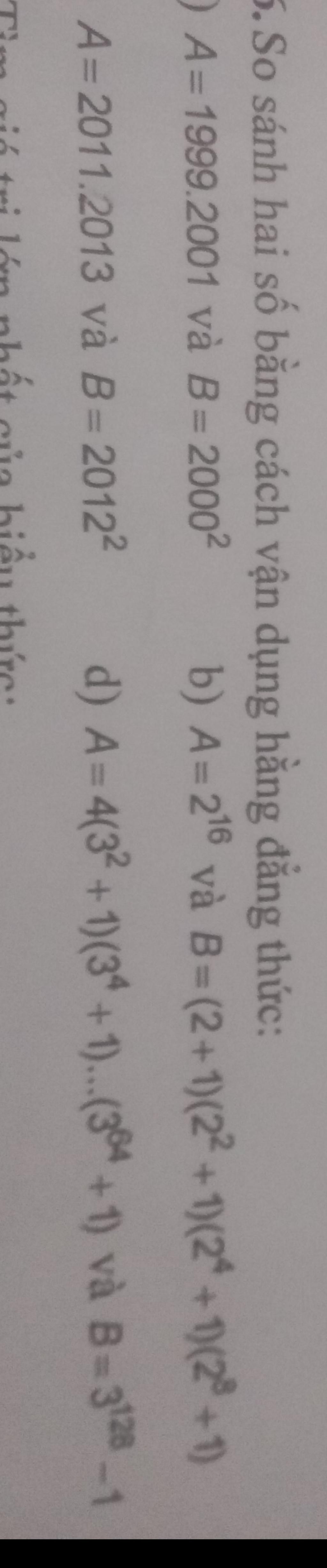 b) `A=2^16` và `B=(2+1)(2^2+1)(2^4+1)(2^8+1)`