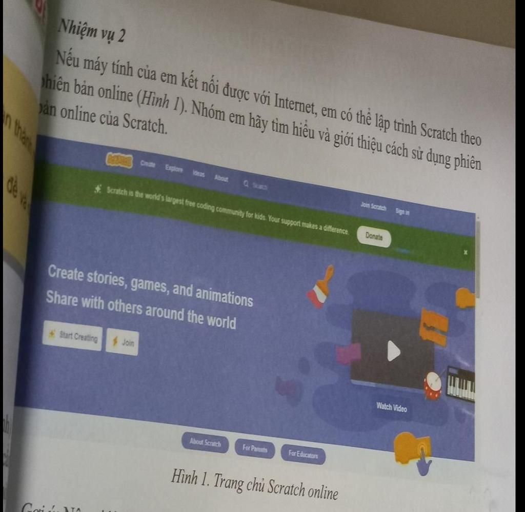 Nếu máy tính của em kết nối được với Intemet, em có thể lập trình Scratch theo