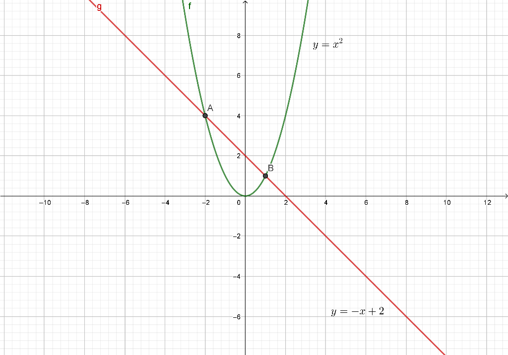 Vậy tọa độ giao điểm của hai đường thẳng đã cho là $(1;1)$ và $(-2;4)$.