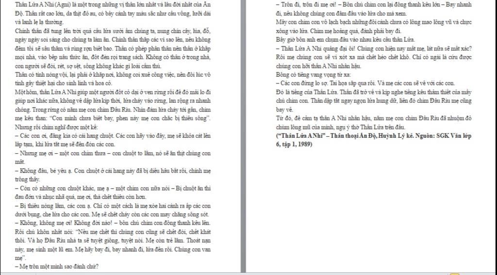 Hành động dập tắt ngọn lửa cứu bầy chim Đâu Riu là hành động gây ấn tượng sâu đậm nhất cho em. Thần vốn rất bận rộn nên sẽ để những việc quan trọng để lên trên. Nhưng khi nghe tiếng cầu xin khẩn thiết của những chú chim nhỏ thần đã nhanh chóng trở về để dập ngọn lửa hung ác. Điều này đã cho thấy được tấm lòng nhân hậu của thần lửa, ngài luôn lắng nghe lời khẩn cầu của mọi sinh linh và sẵn sàng đưa tay cứu vớt những sinh linh lầm than, khốn cùng. Đó là vẻ đẹp, sự nhân hậu, tình yêu của những vị thần.