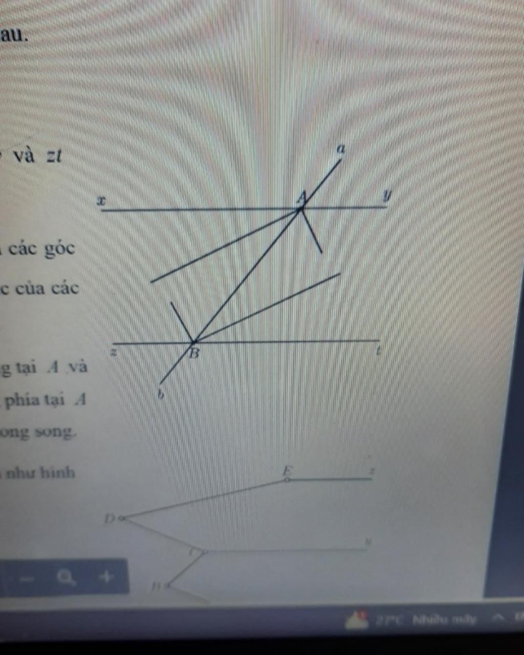 Cho đường thẳng ab cắt đường thẳng xy và zt
