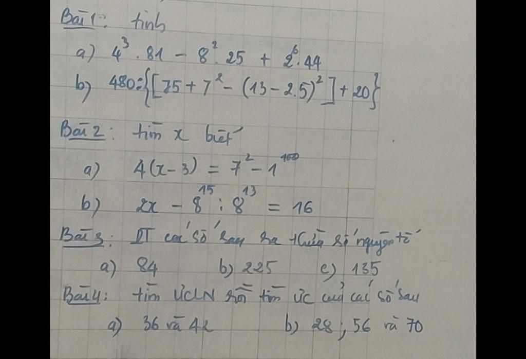 a, 4 mũ 3 . 81 - 8 mũ 2 . 25 + 2 mũ 6 . 44