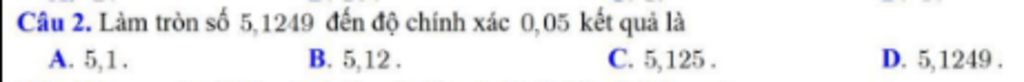 Vậy kết quả làm tròn `5,1249` đến độ chính xác `0,05` là `5,1`