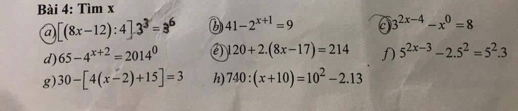 a)(8x-12):4=3(6):3(3) b)2(x+1)=41-9 c) 3(2x-4)-1=8 e)2.(8x-17)=214-120