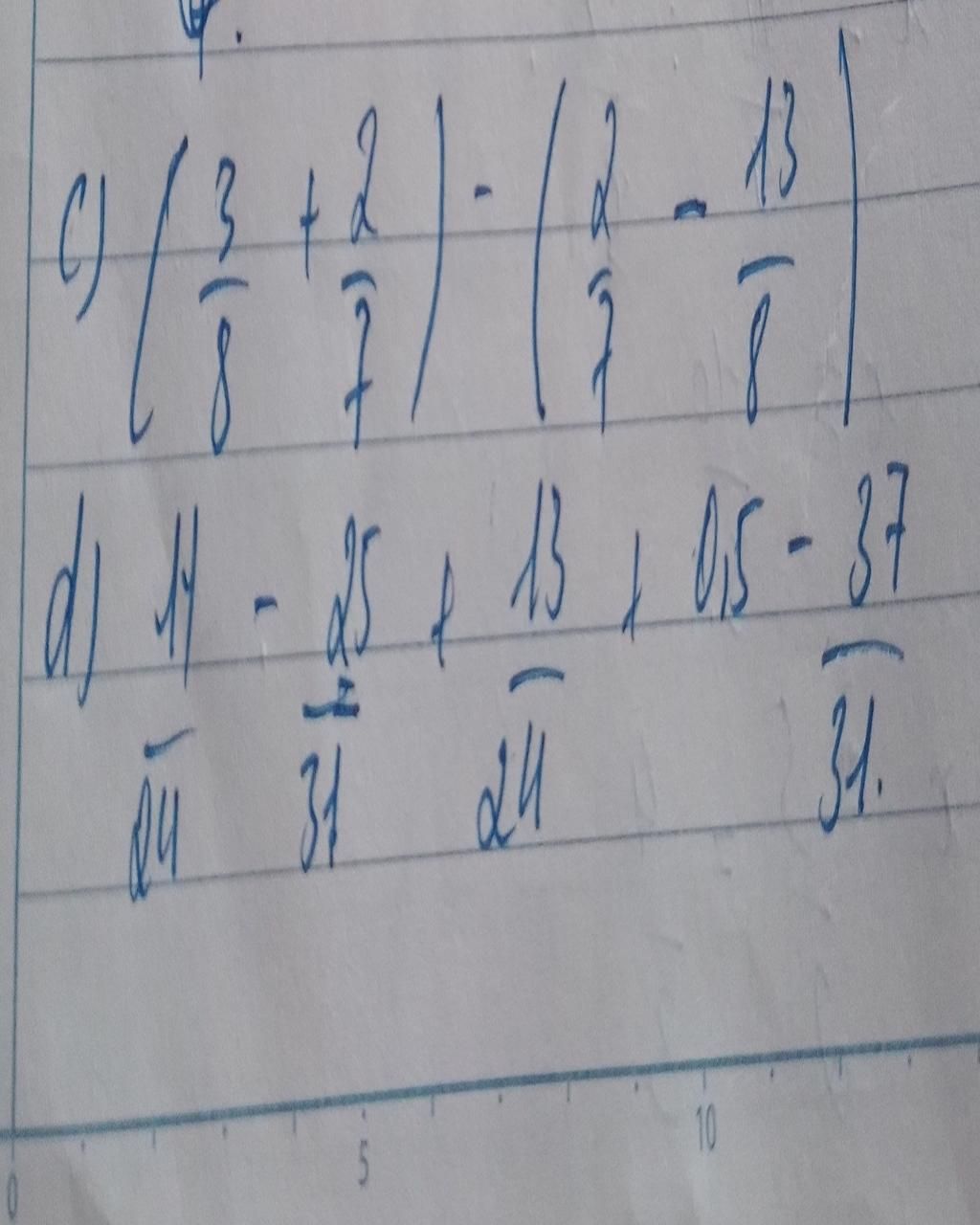 `c)` `(3/8+2/7)-(2/7-13/8)`