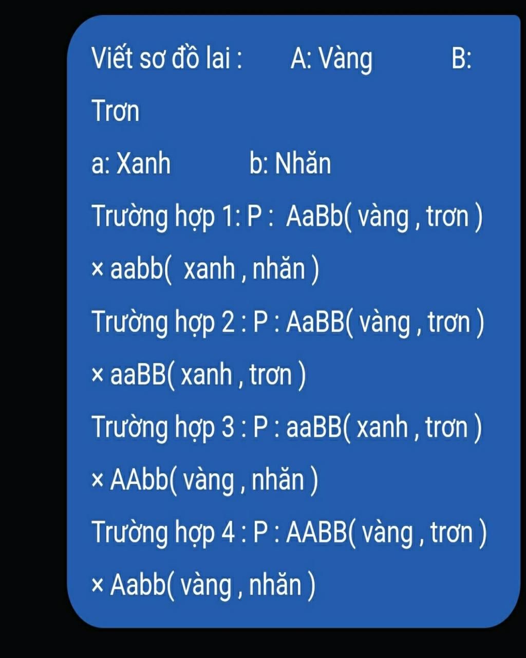 Trường hợp 1: P : AaBb( vàng, trơn )