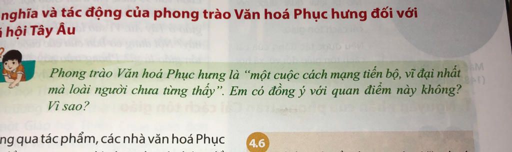 Có vì phong trào văn hóa Phục Hưng đã cho con người ta những thành tựu tiêu biểu cho đến bây giờ và ý nghĩa tác động văn hóa Phục Hưng