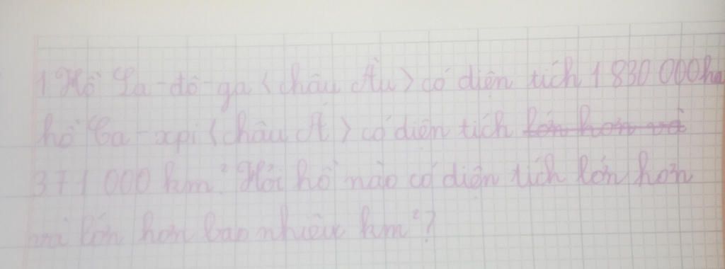 Số km² hồ Ca - xpi ( Châu Á ) lớn hơn hồ La - Đô - ga ( Châu Âu ) là: