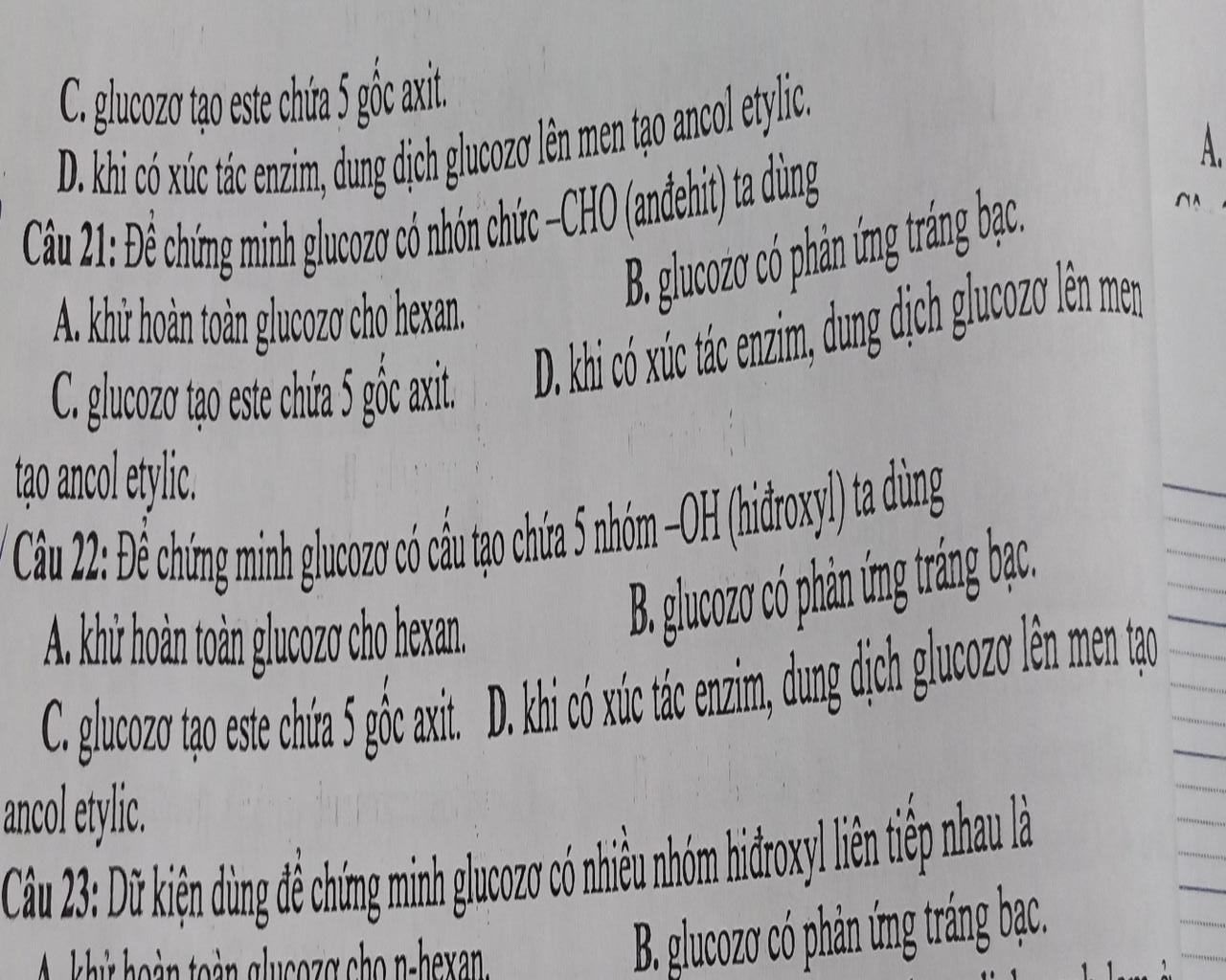 c, Sai. Phản ứng cho biết glucozơ có $5$ nhóm $OH$.