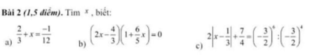c) `2 |x - 1/3| + 7/4 = (-3/2)^6 : (-3/2)^4`
