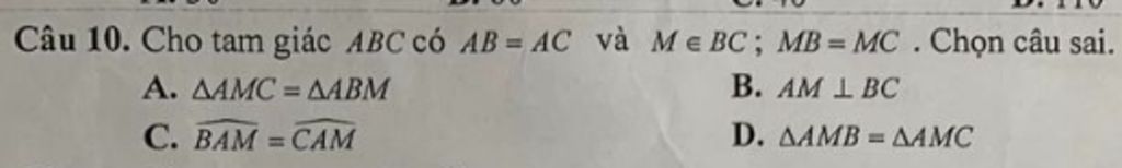 `to A` sai do sai thứ tự đỉnh của tam giác ; `B,C,D` đúng