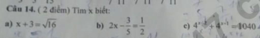 `a)` `x+3=sqrt{16}`