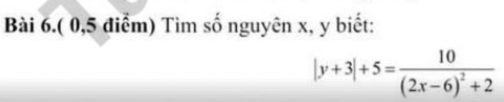 Do `VT>=5;VP<=5`, mà `VT=VP=>VT=VP=5=>` $\begin{cases}y+3=0\\2x-6=0\end{cases}$ `=>` $\begin{cases}y=-3\\2x=6\end{cases}$ `=>` $\begin{cases}y=-3\\x=3\end{cases}$
