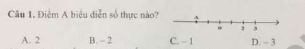 `@` Ta thấy điểm ở nằm ở vị trí thứ `2` nên số thực đó là `2` mà điểm`A` nằm bên trái số `0` nên thêm dấu `-` vào đằng trước `2`